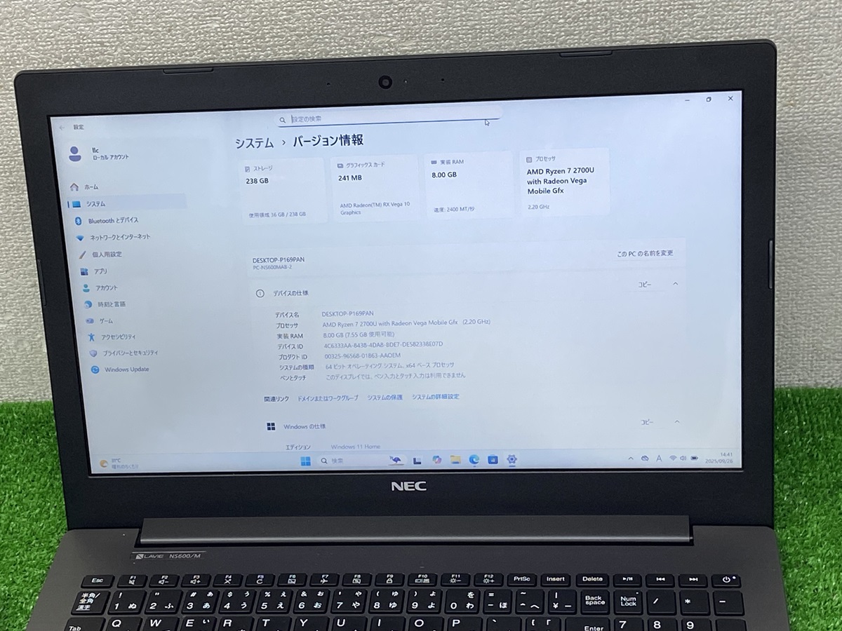 ノートパソコン中古 nec lavie ns 600/m amd ryzen 7 2700u メモリ8GB SSD256GB カメラ 15.6 フルHD ノートPC amd ryzen 7 laptop