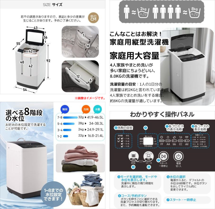 ◆4人家族やまとめ洗いが多い家庭にちょうどいい、8.0kgの洗濯機です。