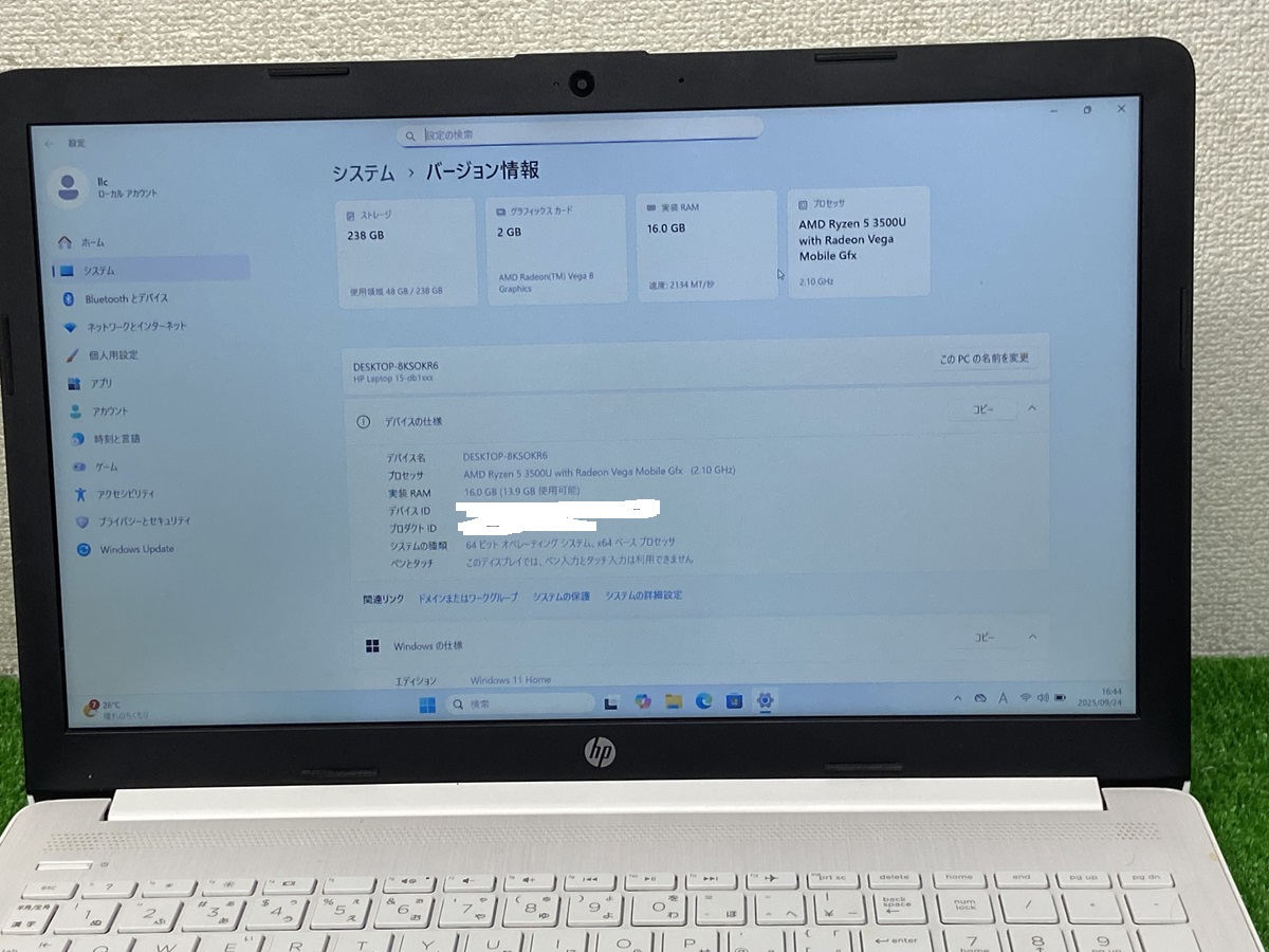 HP LAPTOP 15-DB1056AU AMD RYZEN 5 3500U ノートPC HP WINDOWS ノートパソコン中古 メモリ16GB SSD256GB 15.6 フルHD LAPTOP