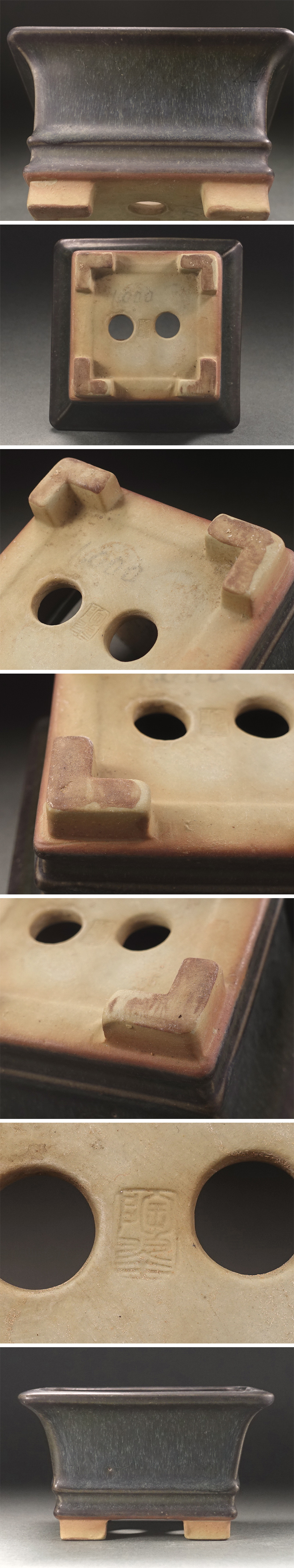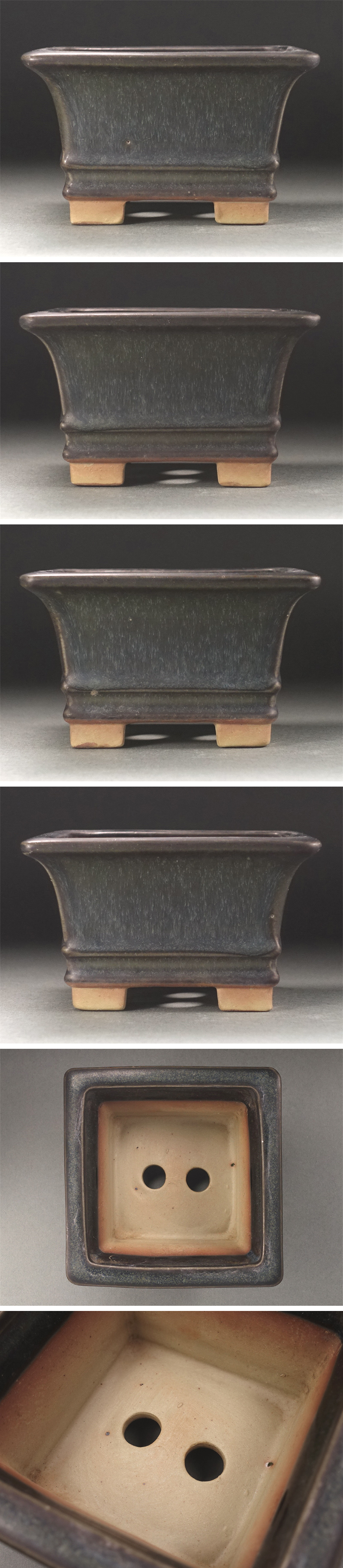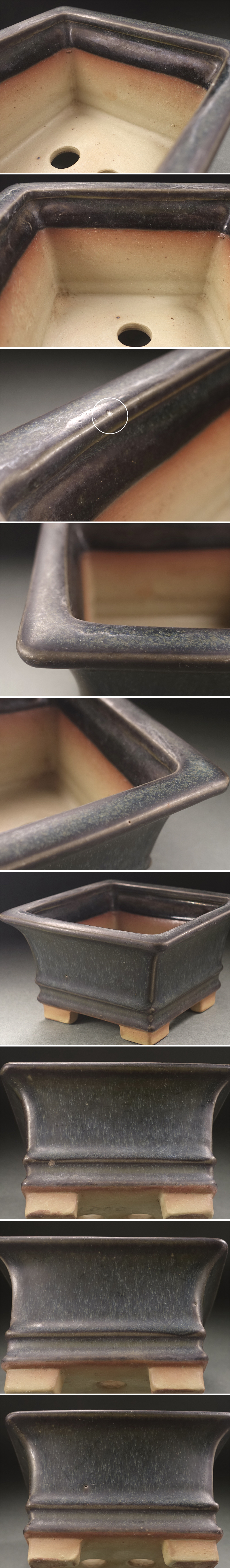 ∇花∇小品盆栽鉢コレクション【植松陶翠】作 黒釉四方鉢 陶翠鉢 幅11.5cm 陶翠款 盆景 植木鉢 樹盆 和鉢 支那鉢 時代盆器 1