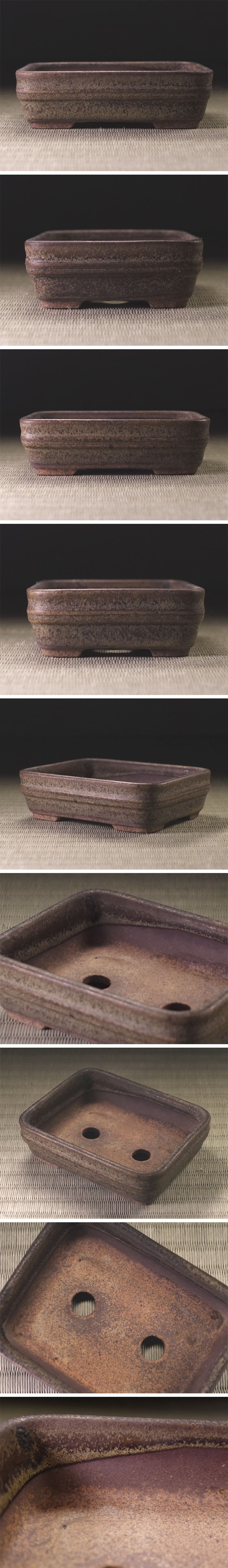 ∇花∇小品盆栽鉢コレクション 梨皮泥窯変釉長方鉢 幅12.2×9.5cm 盆景 植木鉢 樹盆 和鉢 支那鉢 時代盆器 18