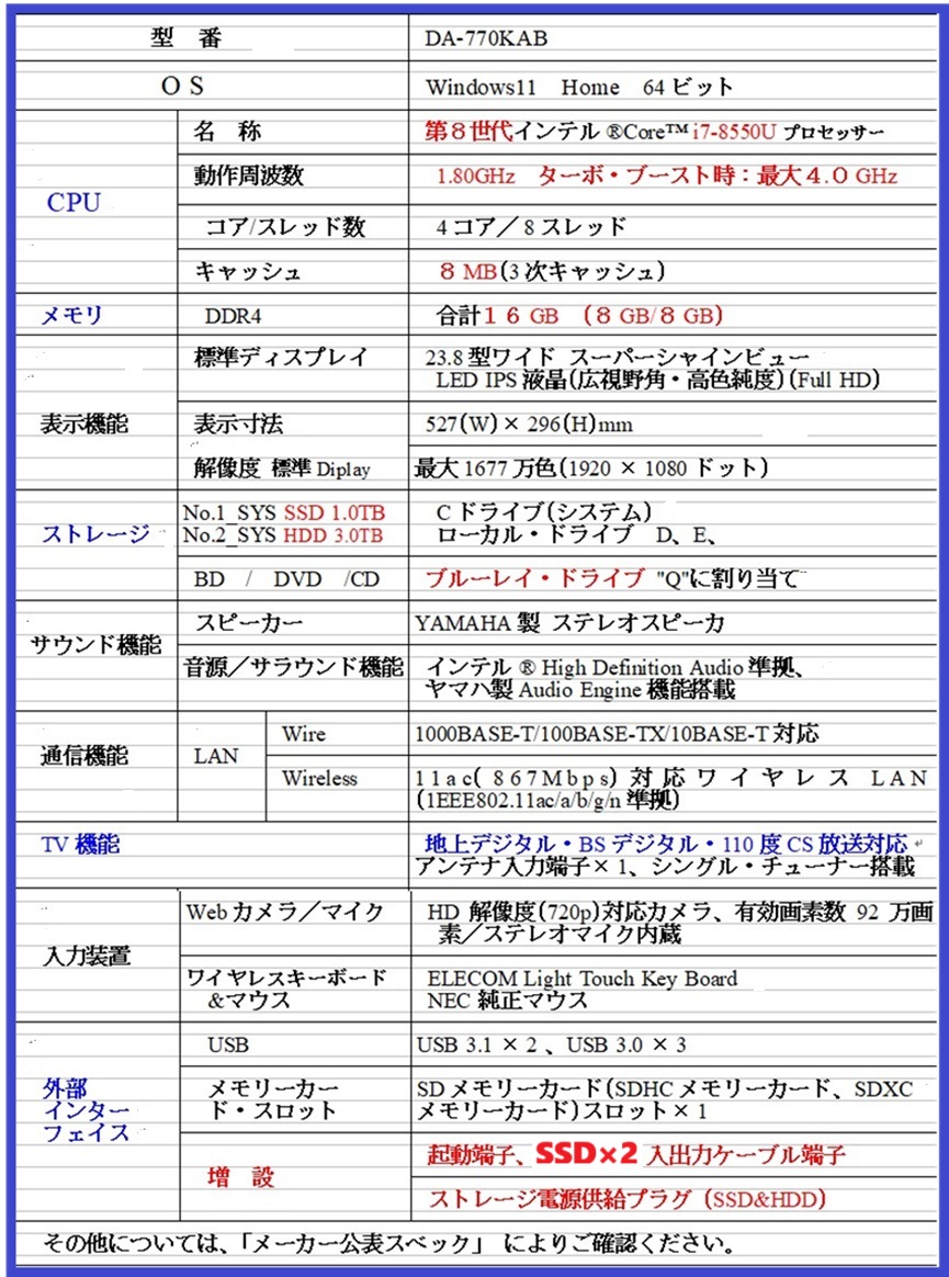 信頼性向上PC、ダブルシステム、迅速な復旧、Win11、DA770K、i7_第8世代_ターボ最大4G、RAM_16GB,_ブルーレイ、TV3波、MS365