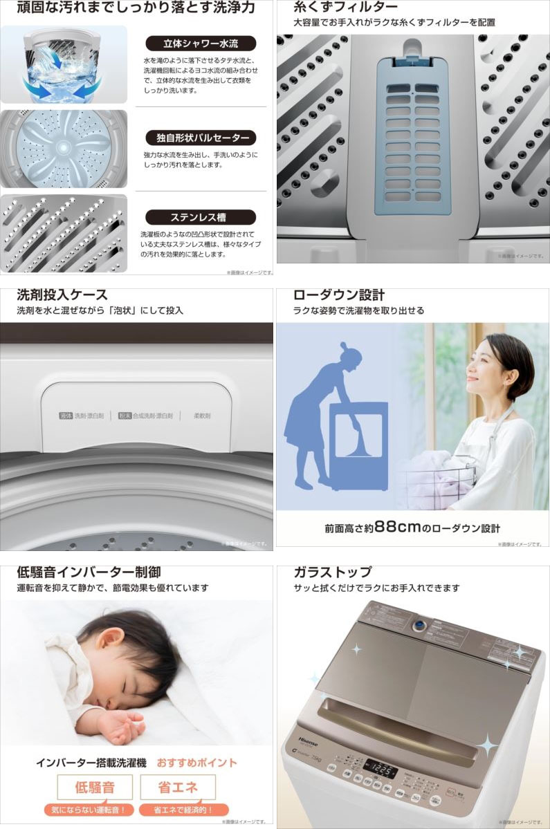 こちらの商品は『未使用・B品』です。通電の確認を行いました。 ★本体正面の下部に凸面がございます。 ★パネルに変形がございます。 ■元の箱に傷やスレ、テープ剥がれがございます。 ■アウトレット品につき、本体に軽い擦れや印刷物に多少の傷みが ある場合がございます。その分、お安くご提供させて頂きますので ご了承の上、お買い求め下さい。 ※トラブル防止の為にも程度は画像を見てご判断下さい。 ※一部画像はイメージ画です。 付属品:取説 給水ホース 水道継ぎ手 風呂水ホース ランク【S】 新品や未開封品・未使用品 (撮影の為の開封品含む) | 外形寸法(幅は排水ホース含む): 幅570mm×奥行560mm×高さ990mm 製品質量:約34kg 設置可能防水パン(奥行内寸法):530mm以上 ボディ幅:530mm |
