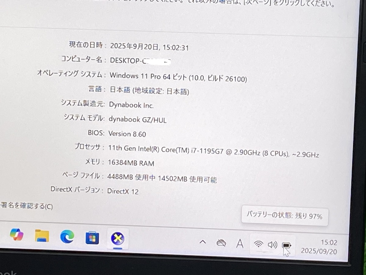 toshiba dynabook GZ/HUL i7 11th gen laptop i7第11世代 ノートPC Core i7-1195G7 東芝 ノートパソコン中古 メモリ16GB SSD256GB 13.3