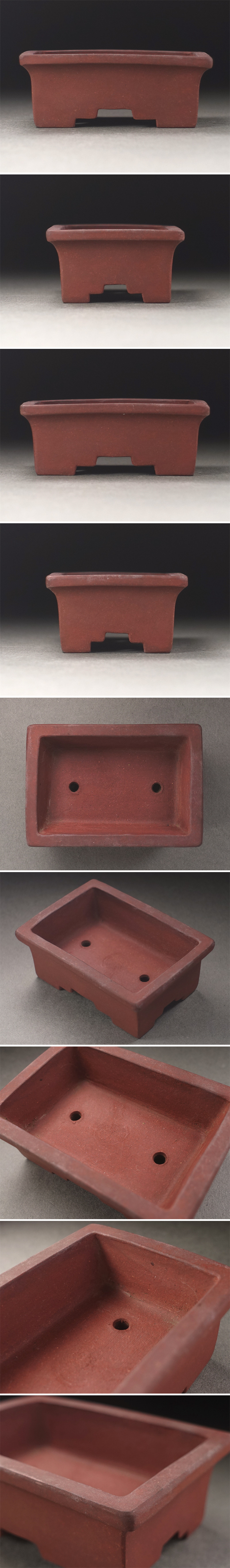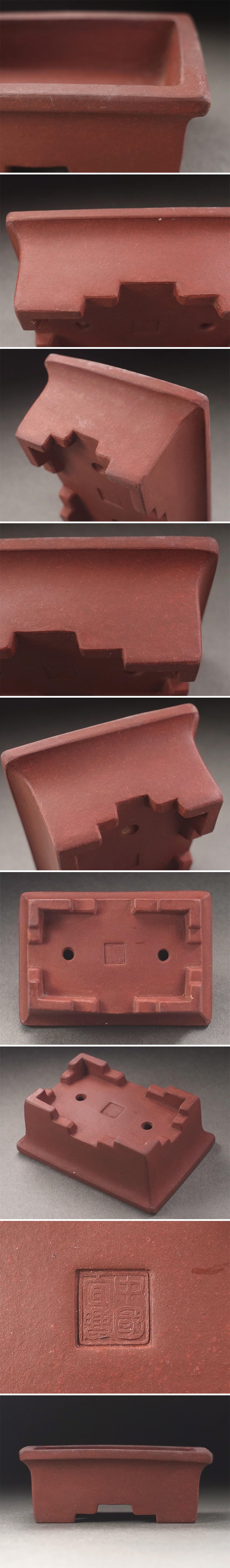 ∇花∇小品盆栽鉢コレクション 中国宜興款 宜興窯 朱泥外縁長方鉢 幅7×4.9cm 盆景 植木鉢 樹盆 和鉢 支那鉢 時代盆器 3