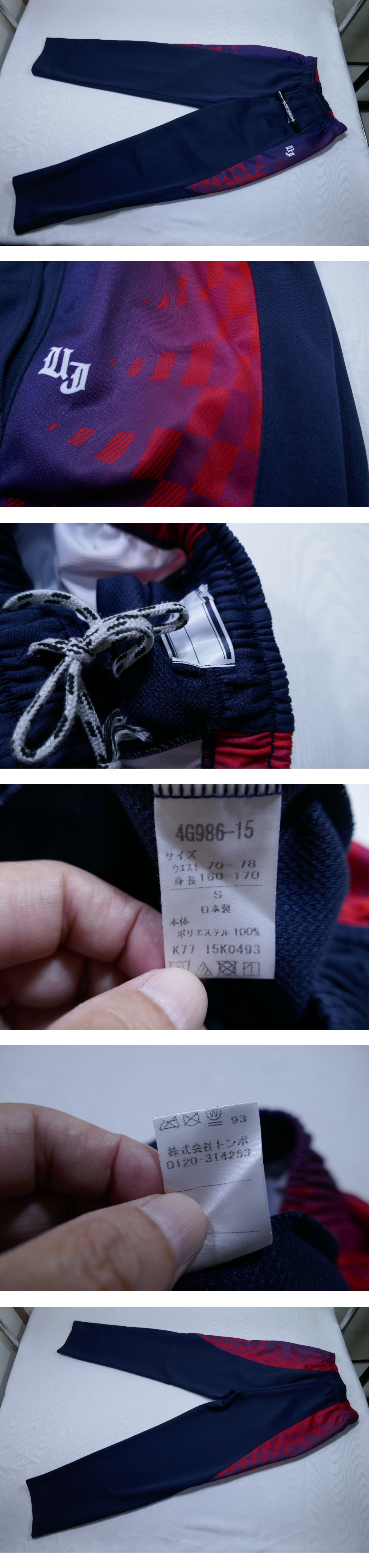 腰横左右ポケット付き(ジャケット&パンツ) パンツWヒモ付き マジック箇所氏名刺繍あり、性別不明 身幅51、着丈(背面襟下計測)61cm(約)になります 実寸ウエスト平置き30、総丈94、股下68cm(約)になります ポリエステル100%素材