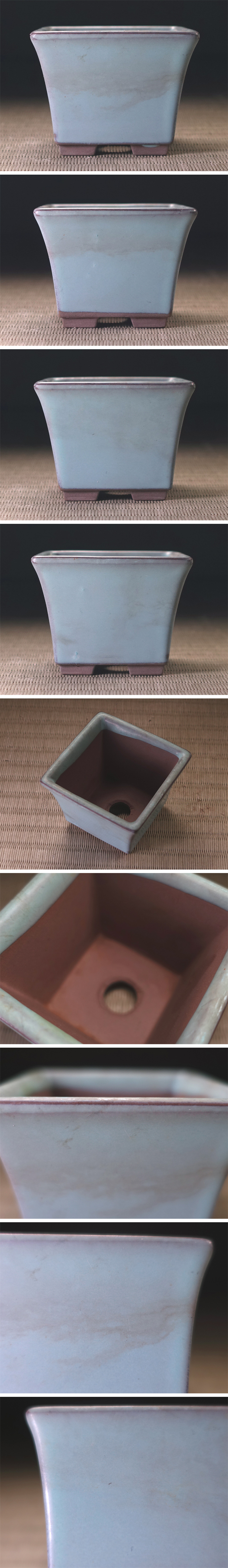 ∇花∇小品盆栽鉢コレクション 青磁釉四方鉢 幅7.3×7.3cm 盆景 植木鉢 樹盆 和鉢 支那鉢 時代盆器 23