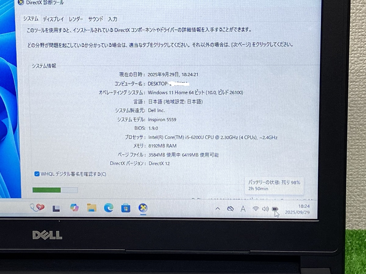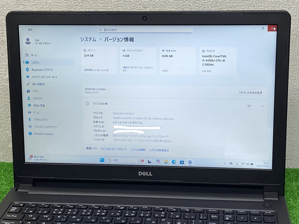DELL INSPIRON 5559 INTEL Core i5 第6世代 i5-6200U メモリ8GB SSD240GB デールノートパソコン中古 15.インチ dell laptop pc