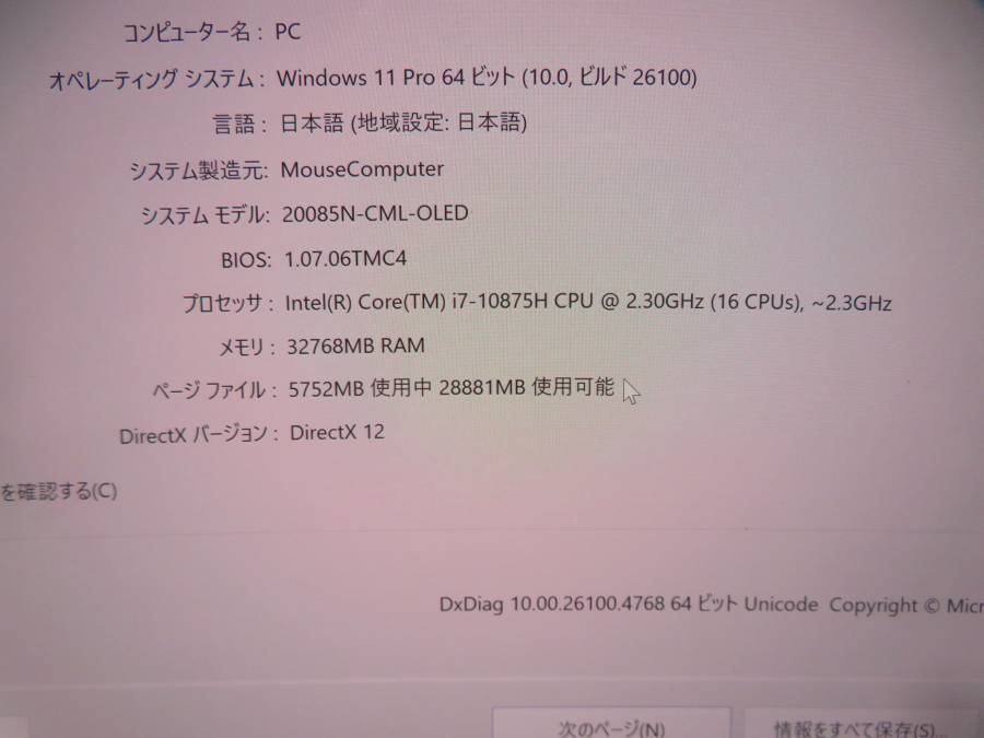 強ゲーミングPC MOUSE 20085P-CML★GTX 2060◆秒速起動core i7第10世代16CPU/ 32GB / 暴速SSD 1TB ★15.6型★Windows11◆Office付◆