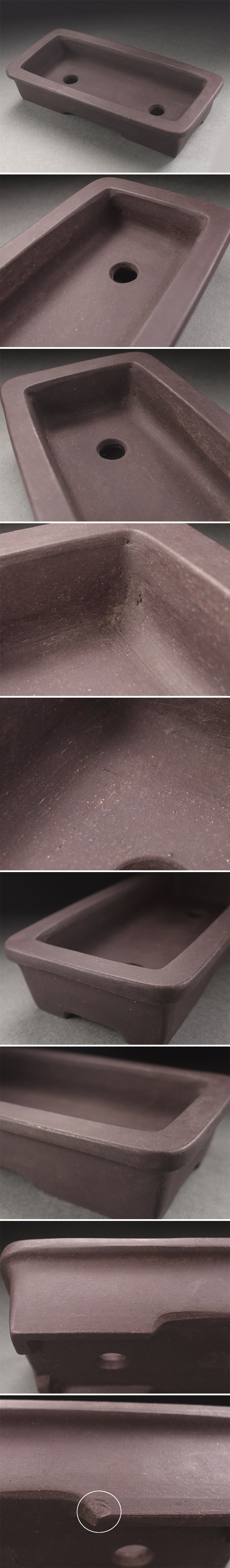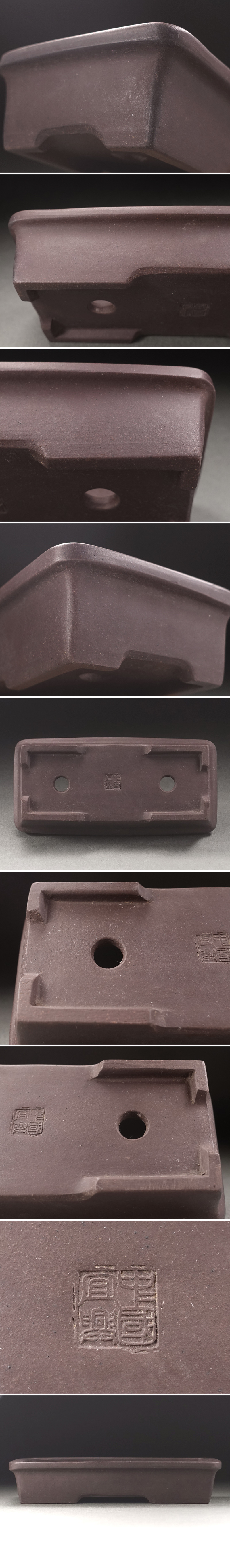 ∇花∇小品盆栽鉢コレクション 中国宜興款 宜興窯 紫泥外縁長方鉢 幅14.9×7.2cm 泥物鉢 盆景 植木鉢 樹盆 和鉢 支那鉢 時代盆器 5