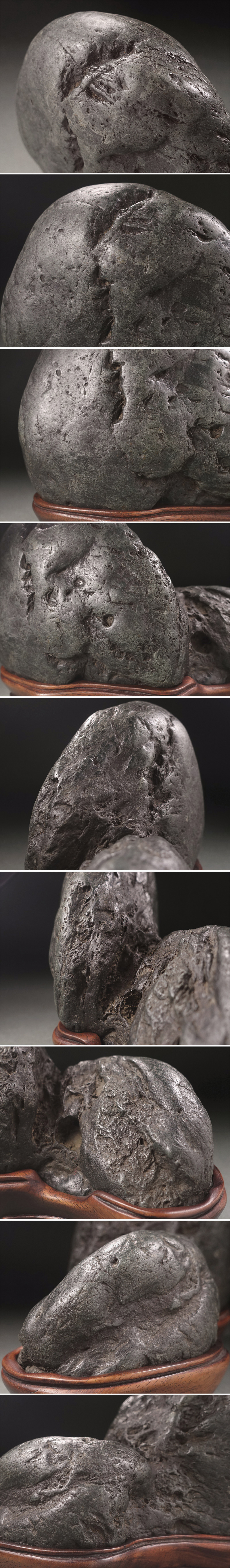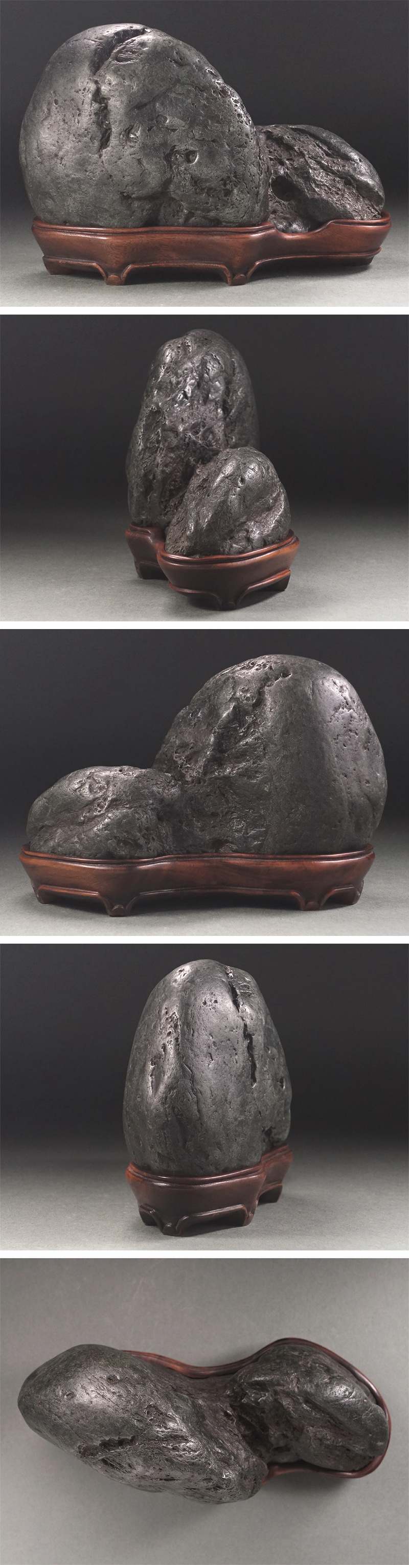 さらには木彫台座が誂えられ、石の変化の動きをよく捉えた上で、台座にもリズミカルな彫りを加えたことで石にぴたりと嵌ります。