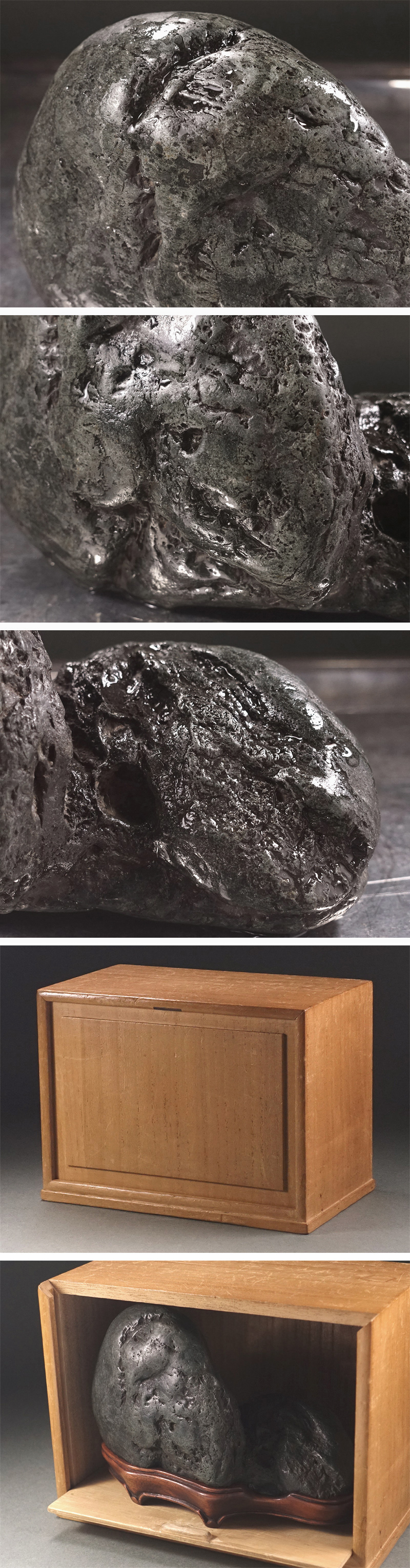 ∇花∇只見川石 山形石 光沢ある地肌 木彫台座・誂箱添