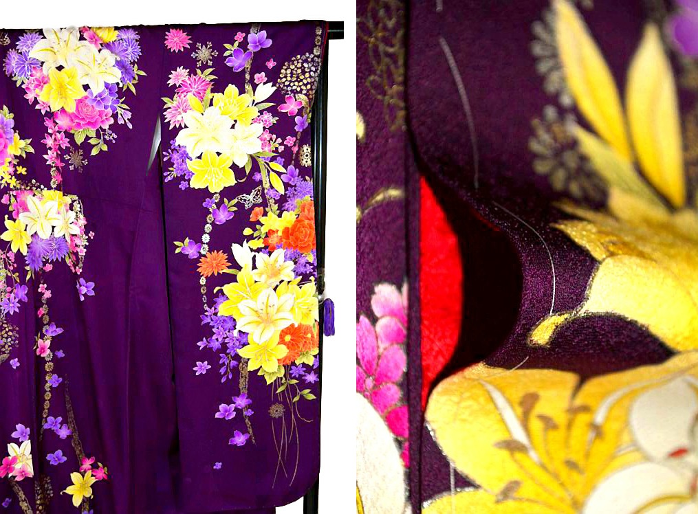 振袖 中古 着物 送料無料 最高峰 未使用品 金彩 シシュウ 花束文 花柄 身丈172.5cm 裄丈67.5cm 正絹 成人式 T3634