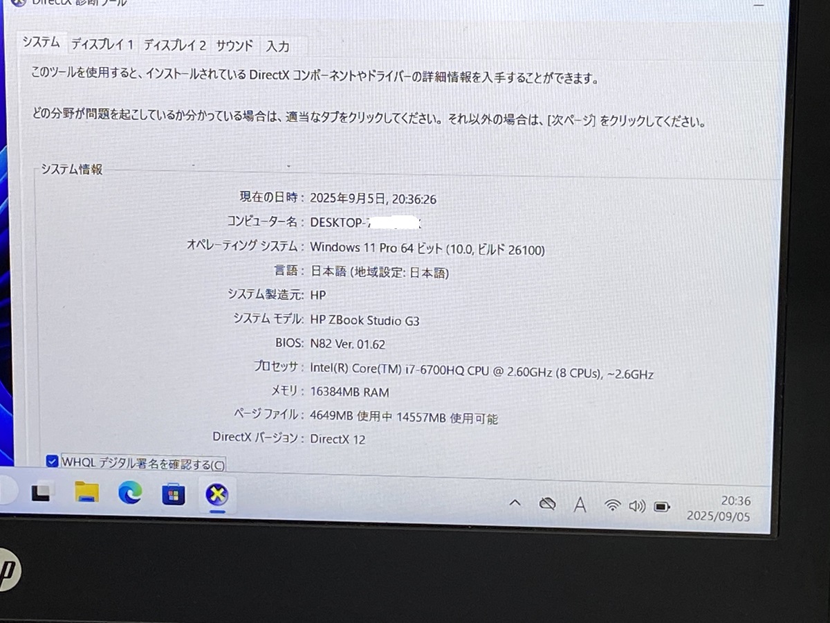 ■CPU: i7第6世代プロセッサー, インテル Core i7-6700U @2.60GHz (8CPUs)~2.6GHz (i7 6th Generation processor)