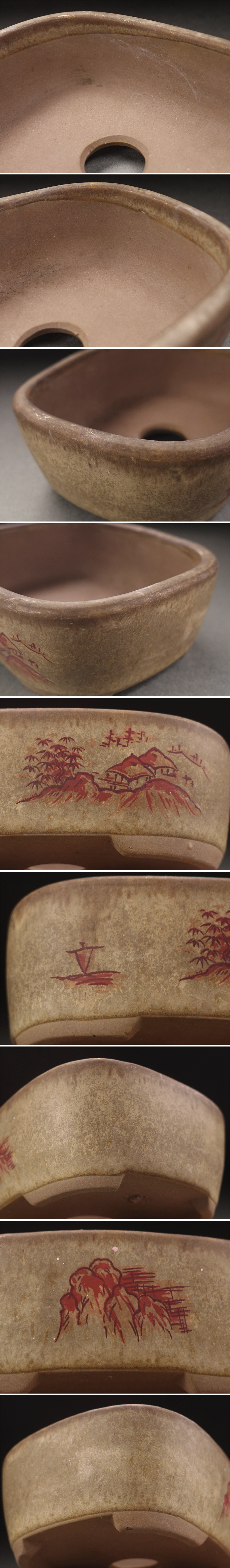 ∇花∇小品盆栽鉢コレクション【立山】作 色絵山村風景図鉢 幅9×6.8cm 盆景 植木鉢 樹盆 和鉢 支那鉢 時代盆器 2
