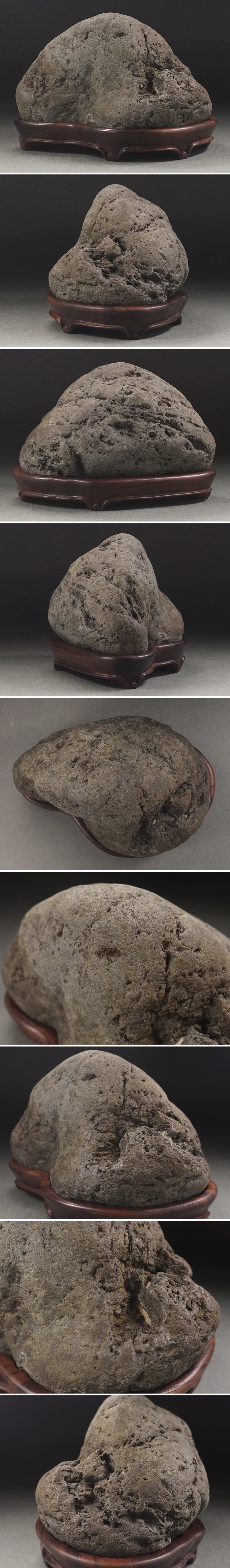 さらには木彫台座が誂えられ、石の変化の動きをよく捉えた上で、台座にもリズミカルな彫りを加えたことで石にぴたりと嵌ります。