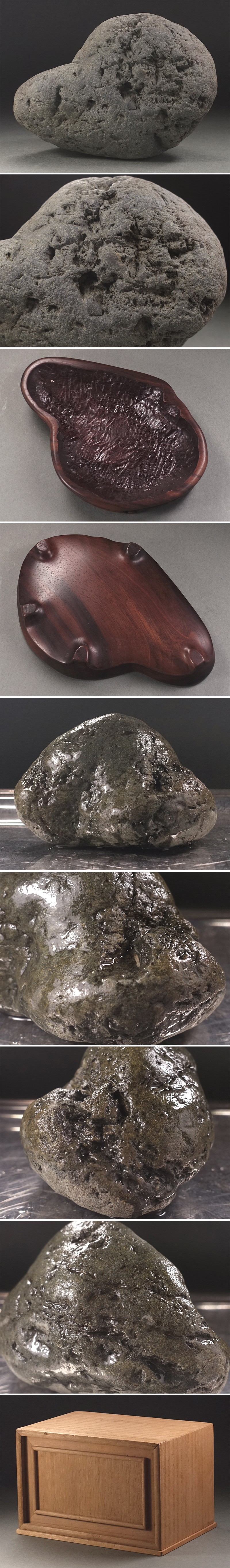 ∇花∇加茂川石 山形石 時代ののった石肌 木彫台座・誂箱添